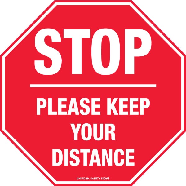 300mm Octagon - Self Adhesive, Anti-Slip Floor Graphics - STOP - Please Keep Your Distance