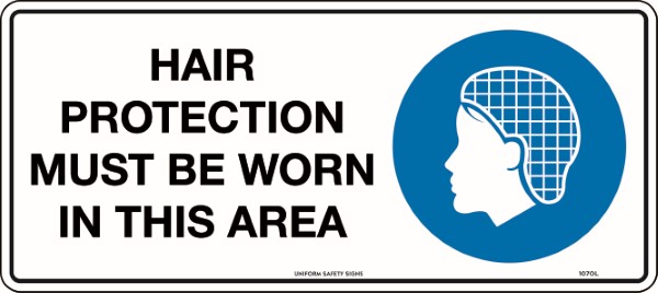 450x200mm - Metal - Hair Protection Must be Worn in This Area