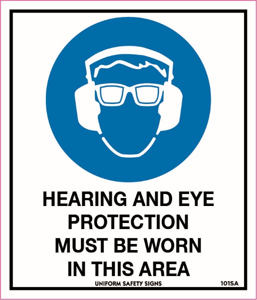 90x55mm - Self Adhesive - Sheet of 10 - Hearing and Eye Protection Must be Worn