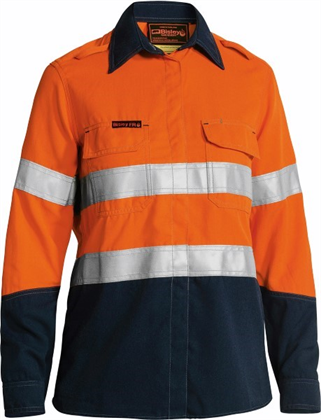 Picture of Bisley Flame Resistant Tencate Tecasafe Ladies Lightweight Shirt Long Sleeve with Vents 2 Hoop Pattern Reflective 197gsm HRC 1 ATPV 6-7