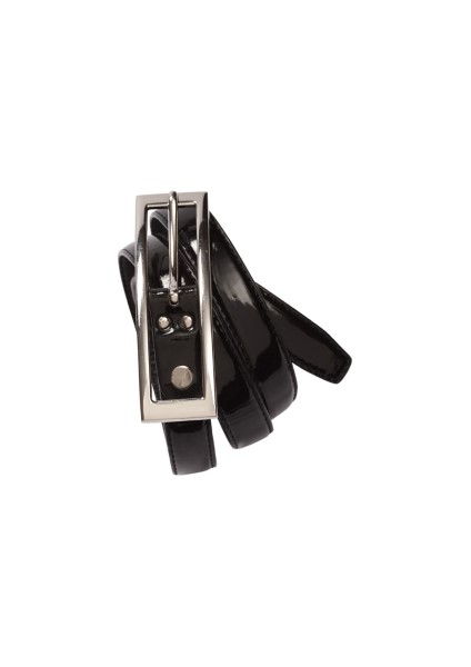 The semi-patent finish and wide silver buckle delivers a chic and polished look