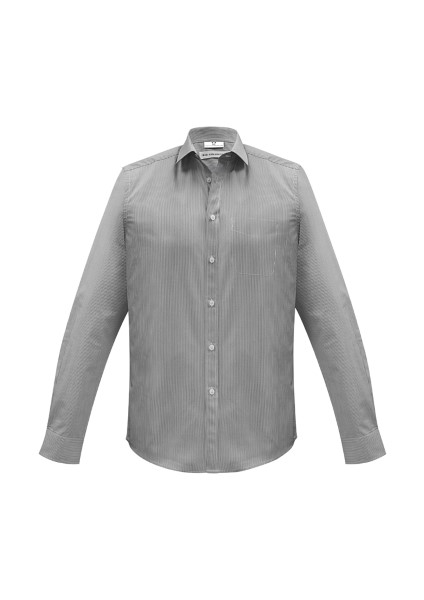 Modern collar, chest pocket, twin back pleats and adjustable cuff