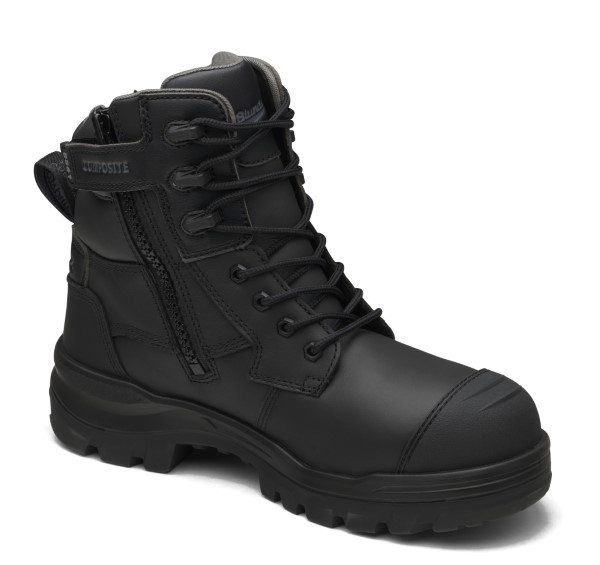Black water-resistant leather upper safety boot — 150mm height