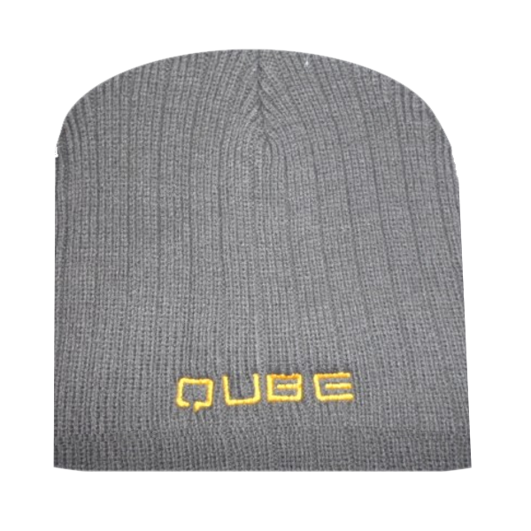 Charcoal Cable Knit Beanie with QUBE Embroided Logo