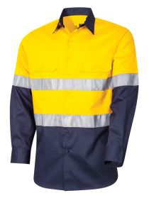 Cotton Drill Shirt Long Sleeve 2 Hoop Pattern Reflective Tape Yellow/Navy 5XL