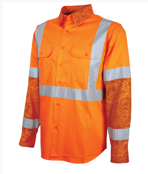 Picture of MaxCool Indigenous Design Cotton Drill Shirt with X Pattern Rail Perforated Reflective Tape Long Sleeve Orange